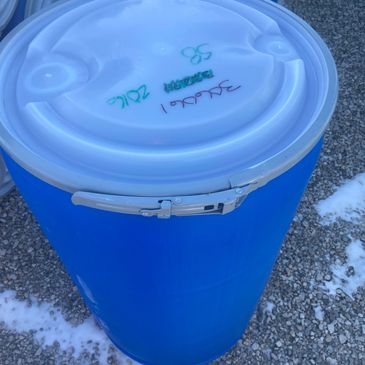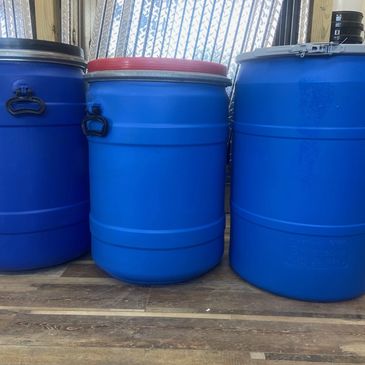 Various sized plastic barrels with lids and locking rings. In stock most of the time are 26 gallon, 18 gallon, and 15 gallon plastic barrels that were used as shipping containers for pharmaceutical powders shipped inside a liner. Barrels are unrinsed but very clean inside.