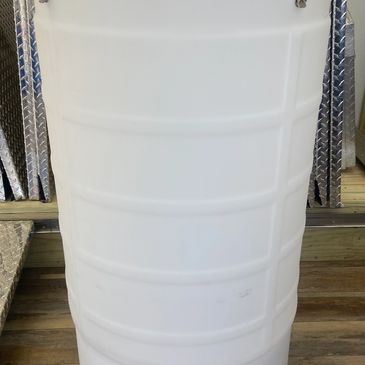 55 Gal. (Used) plastic barrel/drum with removable lid, metal locking rings and seals. Great for easy transportation and storage. Durable locking ring seals tight. Strong and durable HDPE #2 Plastic BPA Free. Common uses: Food storage, Water storage, grain, feed, dust collection, sap collection, storage, dry bin, waterer. Feeder, hydroponi