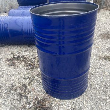 55 Gallon (Used) Steel Barrel made from a steel barrel/drum that previously held essential or food grade oils. The barrel bottom is machine cut to reduce sharp edges. This also provides you with an immediate drain hole by removing the 1" or 2" plug if desired. Size is 23" diameter x 36' height. Barrels are unrinsed and may still have an oily coating. This will burn away on use. These are normally in stock, but if you are purchasing more than 10 at one time please call ahead so we can have them ready for you..